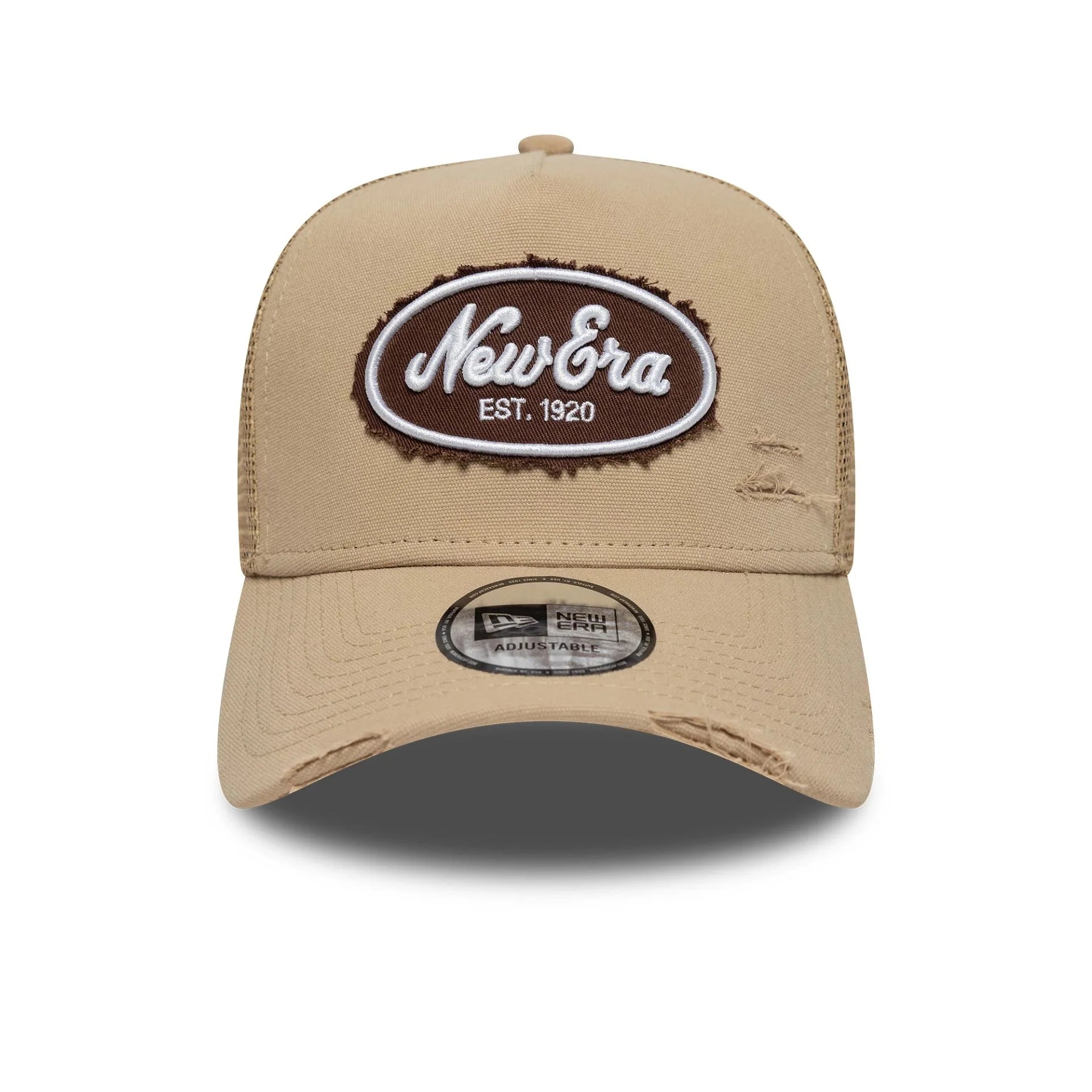 כובע New Era דגם Canvas Distressed Light Beige 9FORTY A-Frame Trucker מתכוונן