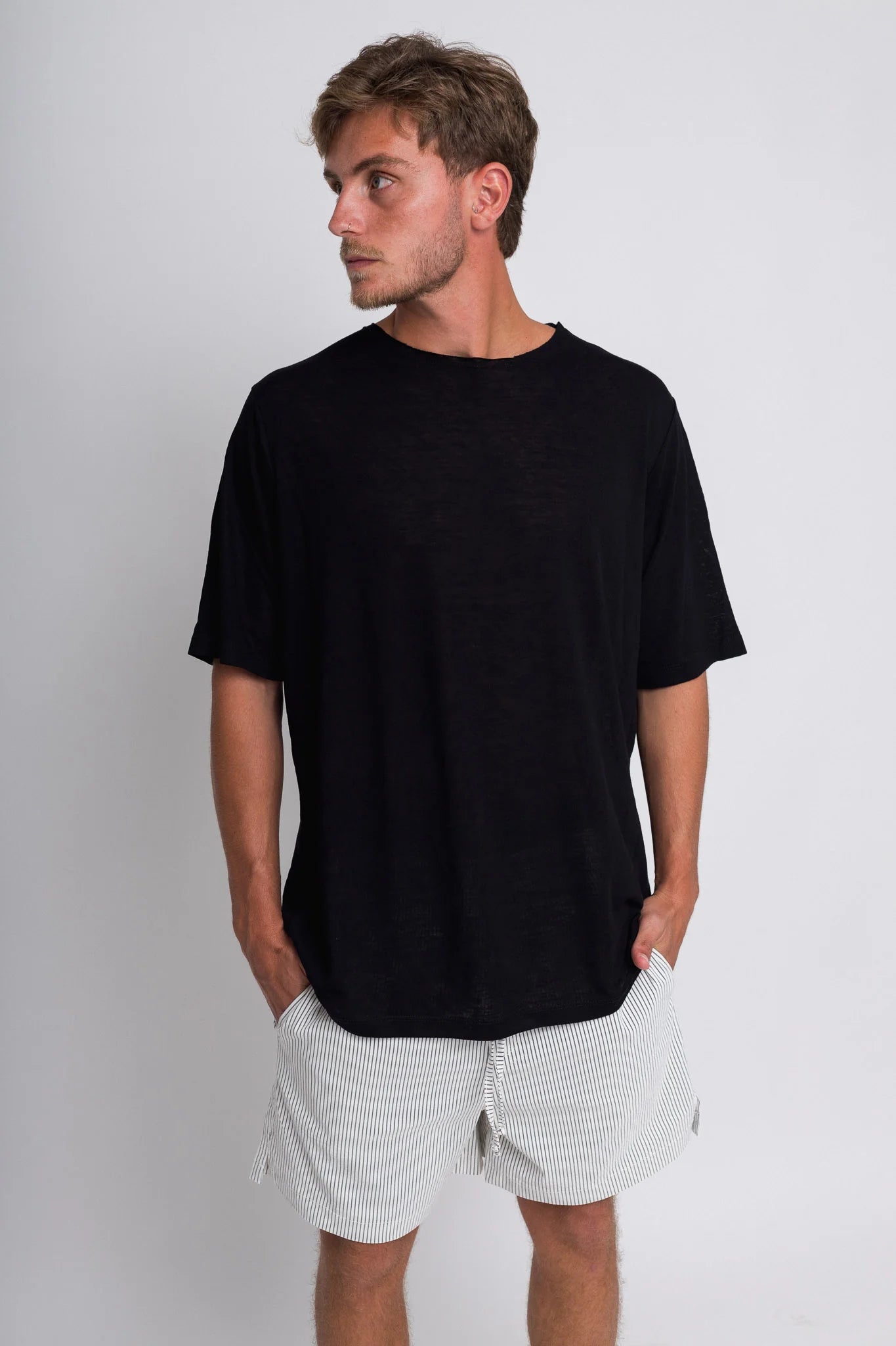 חולצה קצרה פשתן - שחור | Tic Tac Toe