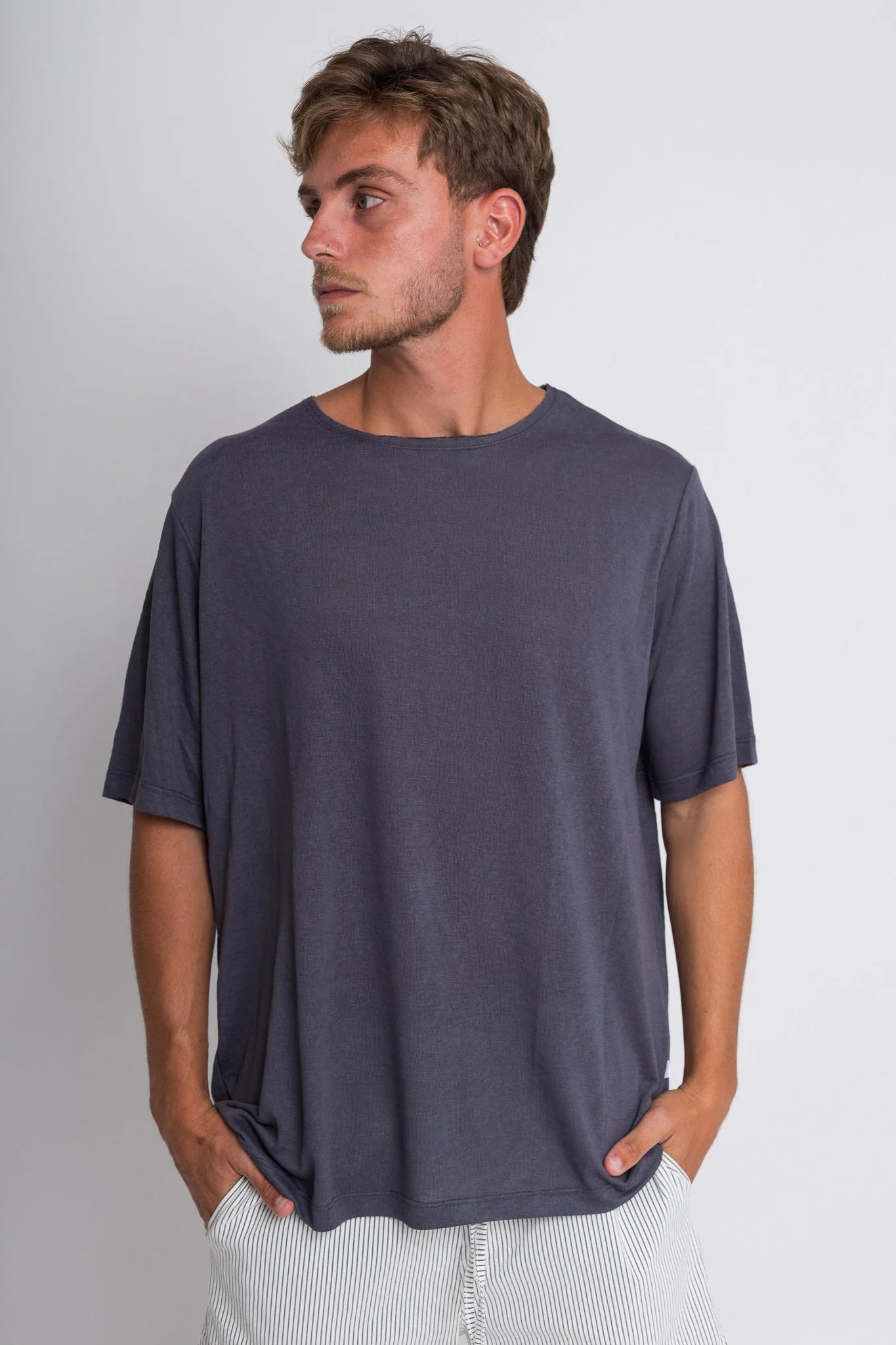 חולצה קצרה פשתן - אפור כהה | Tic Tac Toe