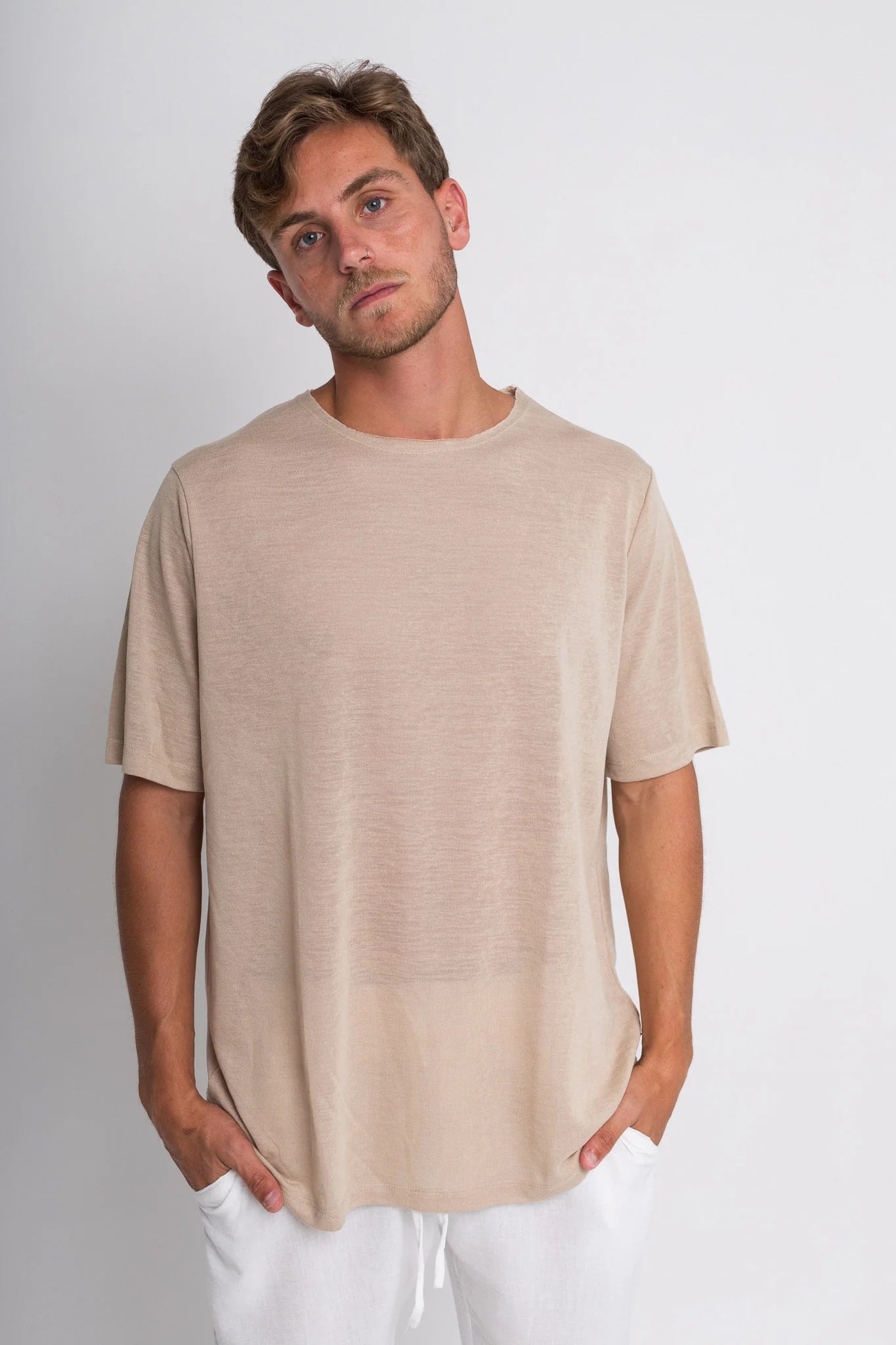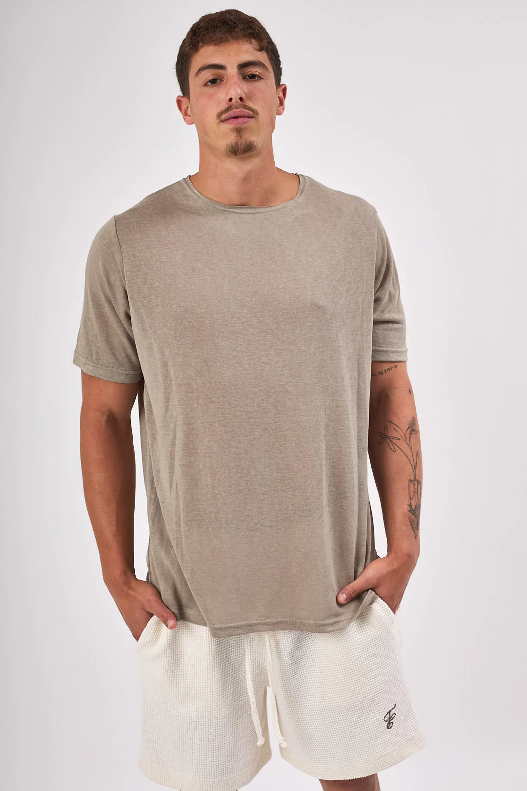 חולצה קצרה פשתן - אבן | Tic Tac Toe