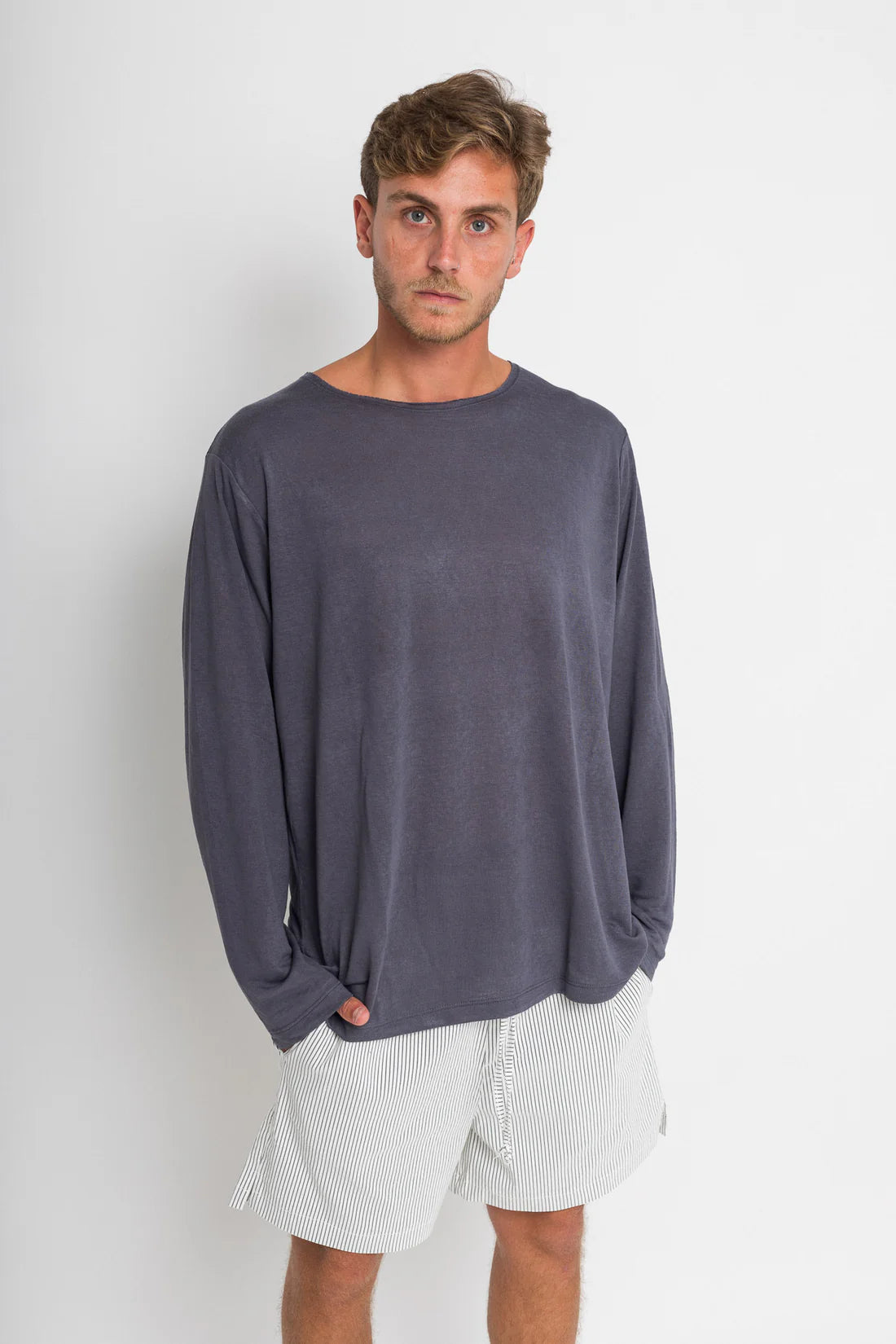 חולצה ארוכה פשתן - אפור כהה | Tic Tac Toe