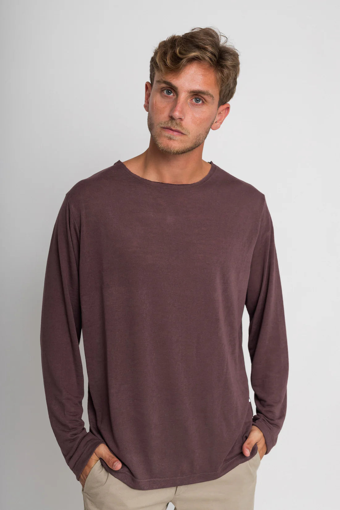 חולצה ארוכה פשתן - חום כהה | Tic Tac Toe