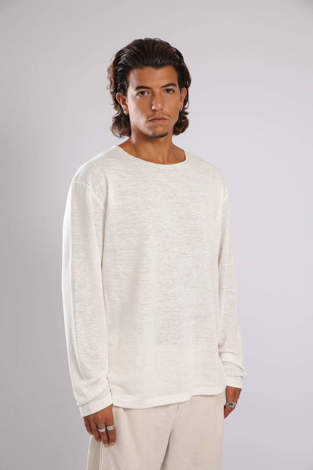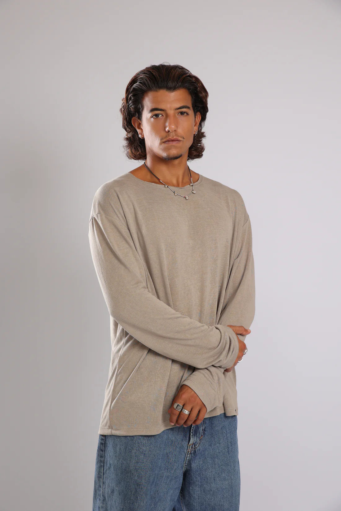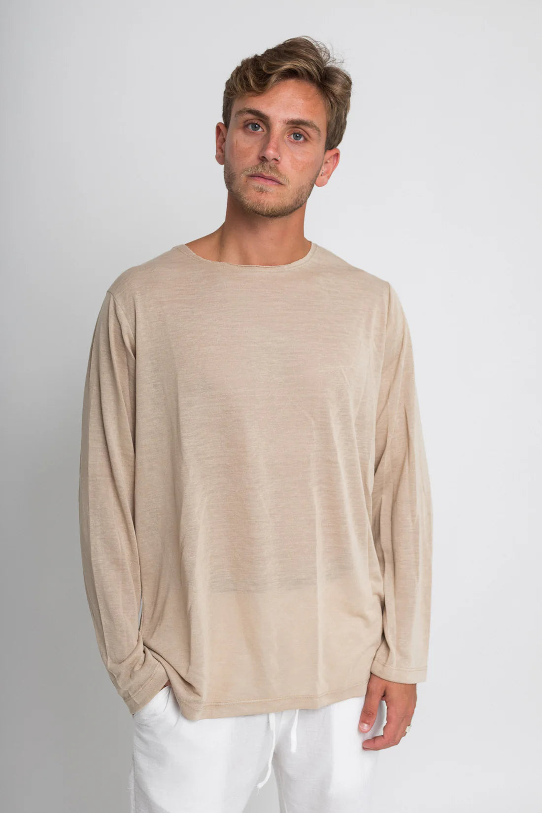 חולצה ארוכה פשתן - אבן | Tic Tac Toe