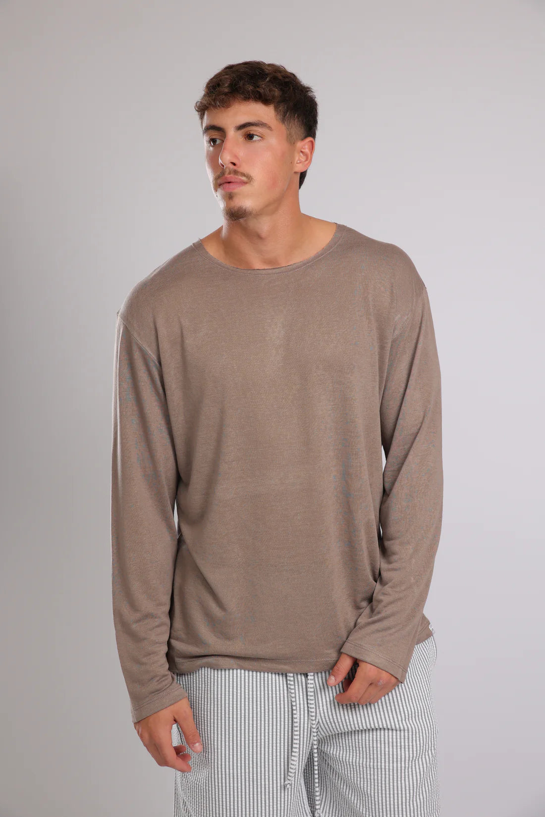 חולצה ארוכה פשתן - חום | Tic Tac Toe