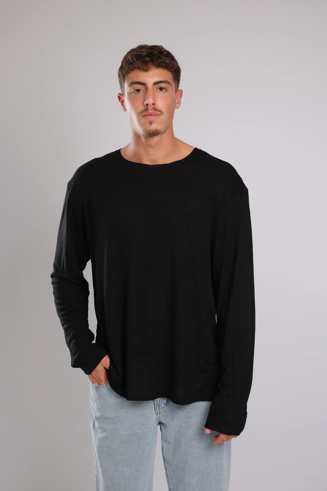חולצה ארוכה פשתן - שחור | Tic Tac Toe